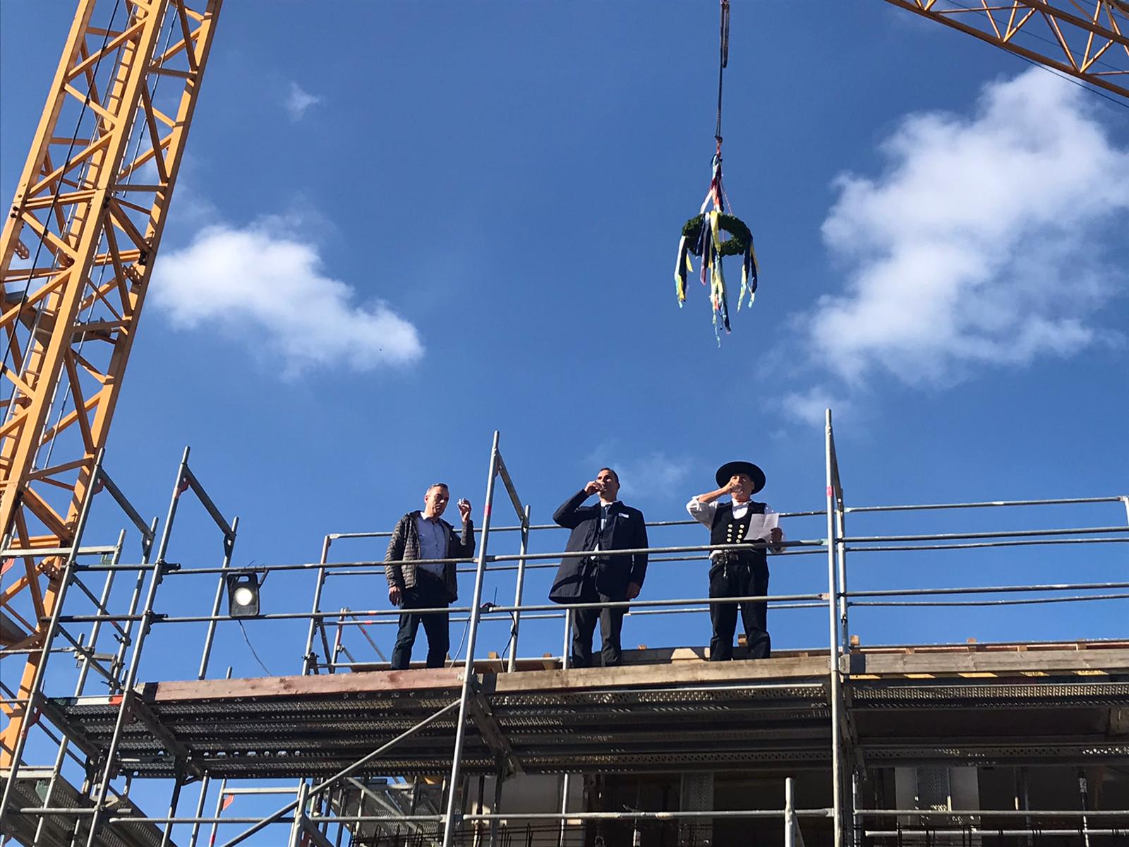 Ungefähr Halbzeit wurde mit dem Richtfest auf der Baustelle im Wohnpark Hühnerbachtal gefeiert. Mitten im Grünen entstehen 3 Mehrfamilienhäuser mit insgesamt 22 Wohneinheiten, attraktiv ausgestattet, stilvoll gestaltet und lebensfreundlich.